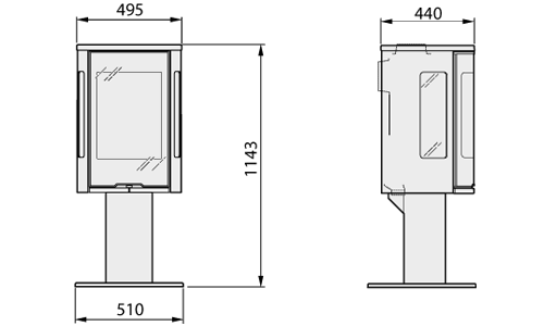 Fully approved for use in smoke control areas, and runs on a 127mm flue. All Phoenix freestanding stoves are available with an integral logstore style base please ask your dealer for details.