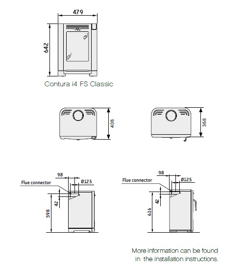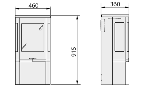 A stunning centrepiece to any room, this stove is based on our 6kw Wildwood but with reduced depth. It takes a 6 inch flue with the versatility of either the profiled flat top, rolled flat top or low curved canopy (Rear flue only on the low curved canopy).