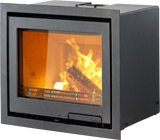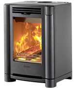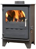 The FoxFire, This superb little stove boasts 82% efficiency on both coal and wood, DEFRA approval, and with the ability to pipe air directly to the stove, makes it the stove of choice for new build housing.