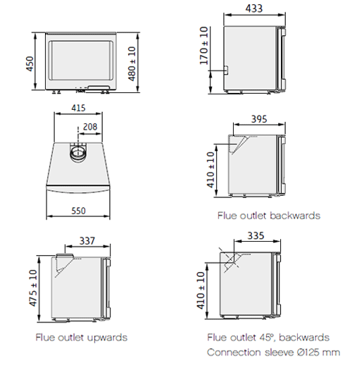 127mm Flue Outlet rotating through 180 degrees to allow either 90 degrees or 45 degrees outlet.