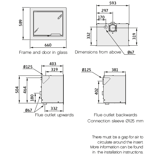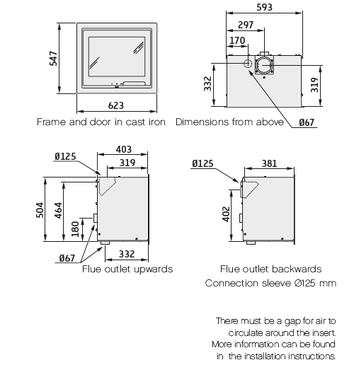 The Firebright is approved for use in smoke control areas, and the multi positional 127mm flue outlet makes installations in nearly all fireplaces much simpler, this is aided by the easy fit cassette box (supplies as standard) and designed to fit inside a standard builders opening with the cast fireback removed.