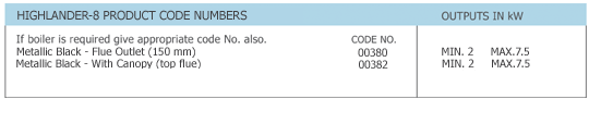 Boiler options available are:
