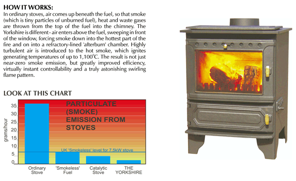 Developed through 30 years of research The Yorkshire Stove Woodburning Multifuel Stove is the first of a whole new breed of heat source. At last, we have created fire without smoke.